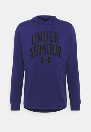 Modrá mikina značky Under Armour s výrazným nápisem na hrudi. Vhodná na každodenní nošení i sport.